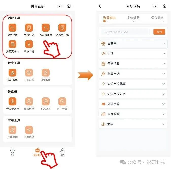 功能内容:支持 67 类起诉状(如借款合同纠纷、离婚纠纷等)转换为要素式诉状,用户上传现有起诉状后,系统自动提取当事人信息、诉讼请求、事实理由等核心要素,按法院规范格式重组生成要素式诉状。