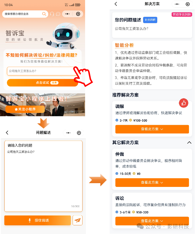 用户价值:免费获取初步解决方案,帮助用户快速明晰纠纷处理方向,减少线下咨询成本。