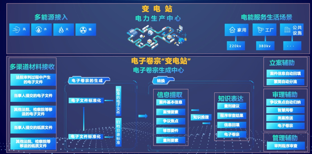 该模式贯穿于法院的立案、审判、结案、执行等多个环节,通过采用社会化的人力外包服务、智能化的设备以及信息化的系统,实现诉讼卷宗的集中处理、规范流转及一键归档等功能,为推进案件信息回填、智能阅卷、文书生成、卷宗调取借阅等各项深度应用功能奠定坚实基础,为电子卷宗在辅助办案、流程监管、审判监督、优化服务等方面提供强有力的抓手。“数据变电站”模式已成功在北京市高级人民法院及全市24家法院落地,为实现案件全流程线上办理、全业务辅助办理、全过程信息留痕、全节点监督管控、全方位智能服务奠定基础。